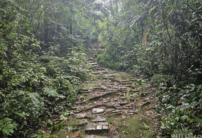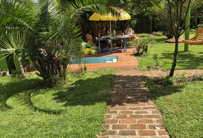 A peaceful walk through the retreat's serene open spaces.